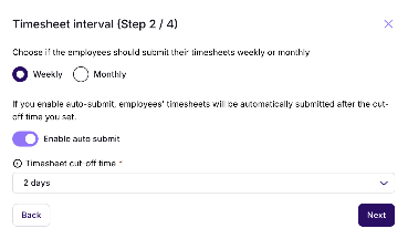 Step 2/4: Timesheet interval