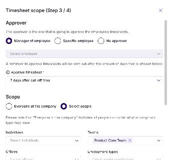 Step 3/4: Timesheet scope