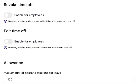 Allow clock in/out: this allows the employee to clock in when they start working and clock out when they end their day