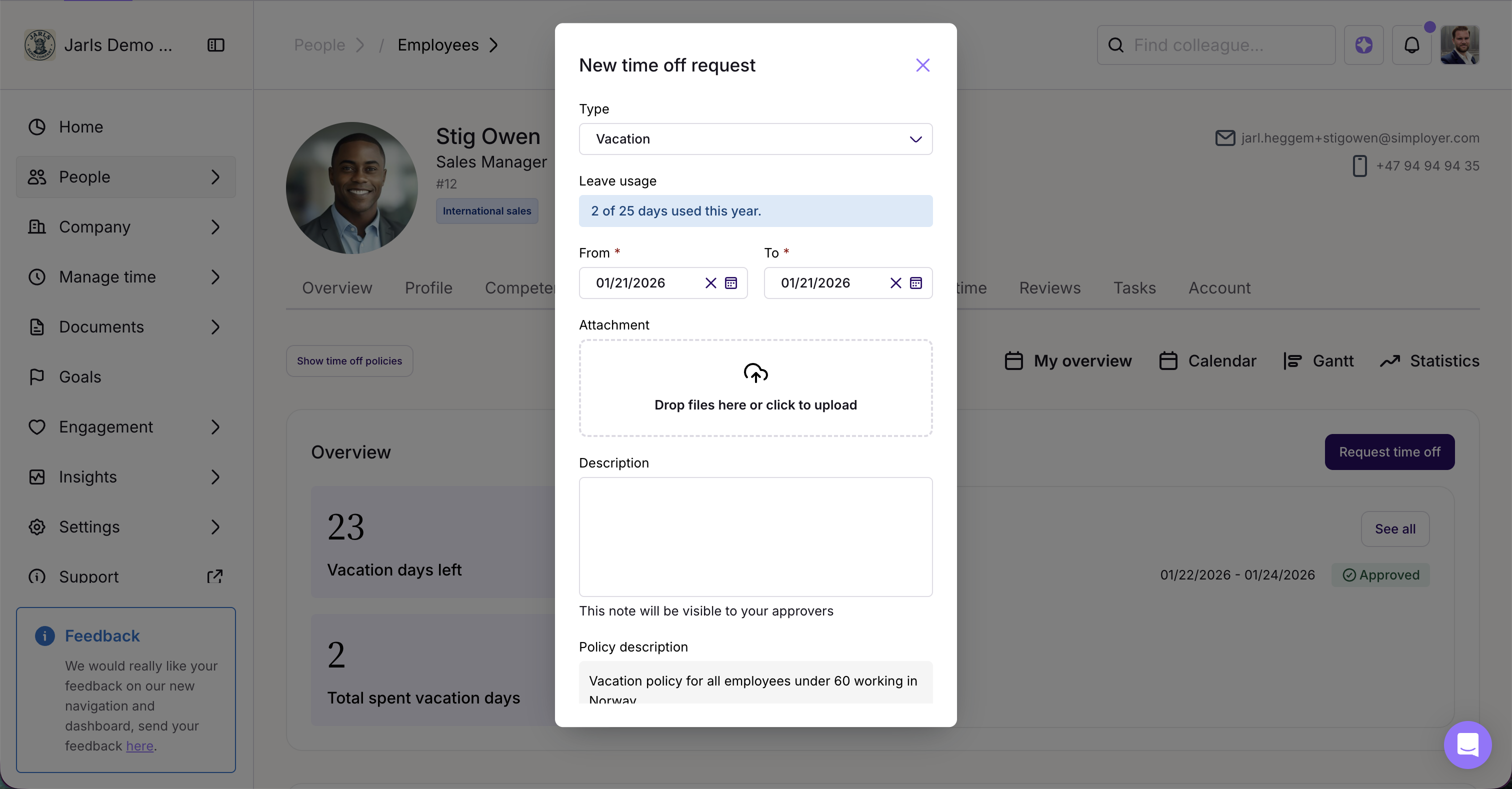 On the employee's profile page, navigate to the "Time off" tab.