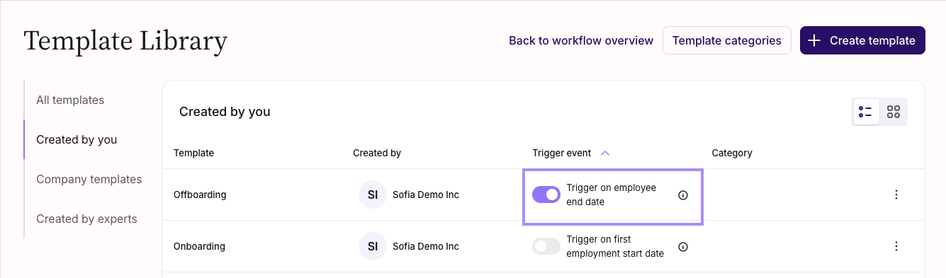 - Workflows will now start automatically whenever the selected trigger event occurs (e.g., an employee's employment start date).