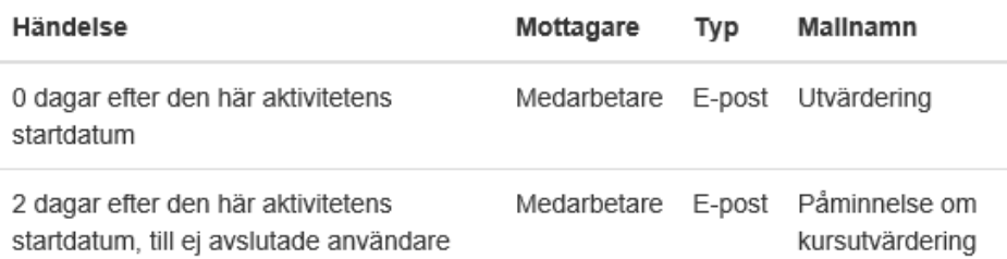 For å legge til en evaluering gjør du på samme måte som med nettbasert kurs, se avsnittet NETTBASERT KURS SOM DEL AV OPPLÆRING. Forskjellen fra nettbasert kurs er at det er et spørreskjema som skal velges, og spørreskjemaet må være opprettet tidligere under Administrer > Spørreskjemaer.