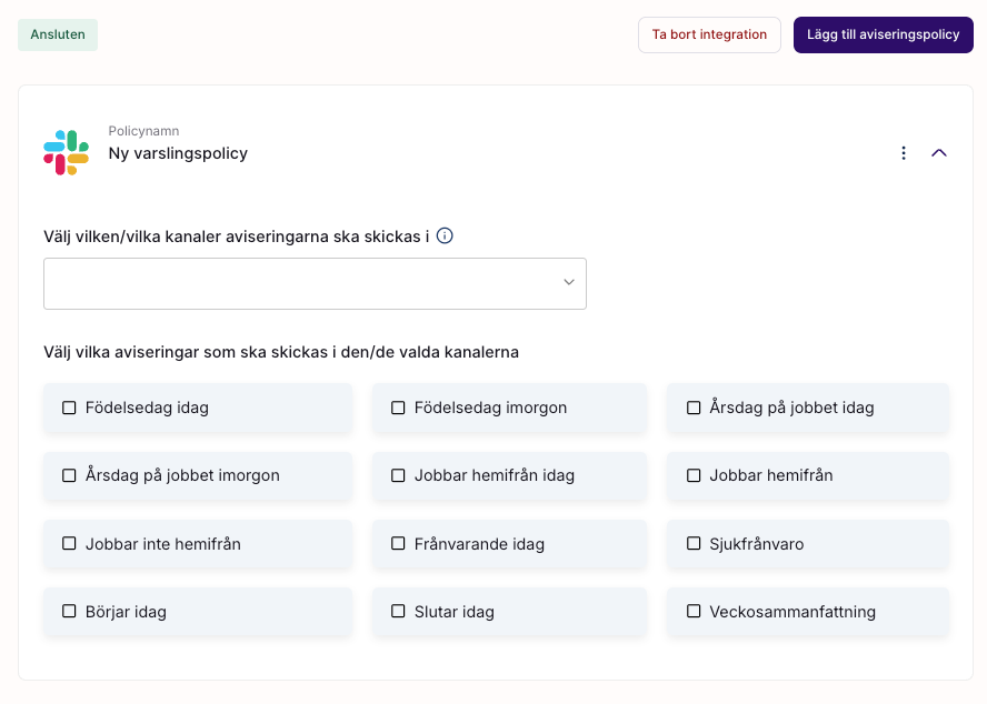 Välj vilka Slack-kanaler som ska ta emot notifieringar