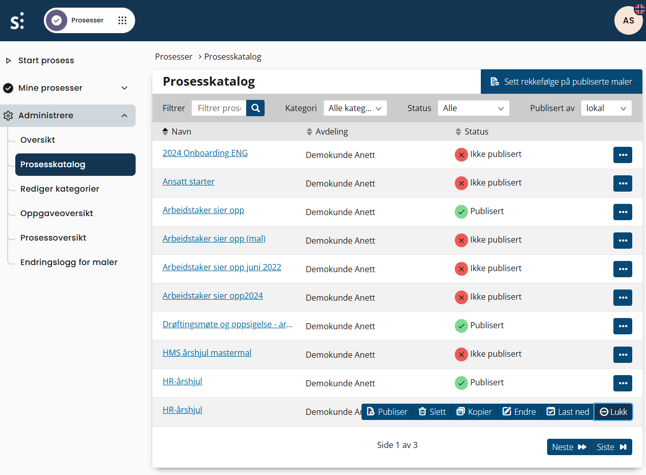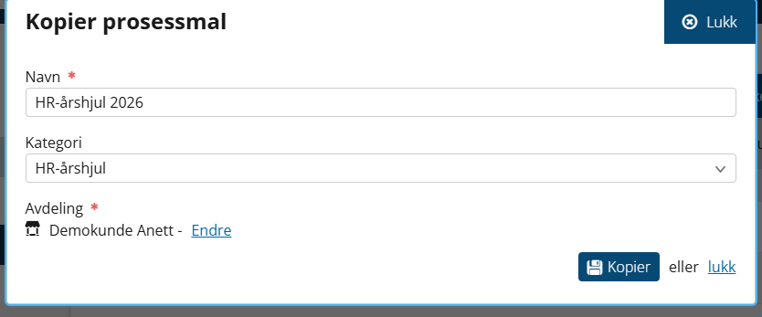 Administratörer har möjlighet att kopiera en processmall. Detta kan vara aktuellt om du vill bevara originalmallen och skapa en ny baserat på den, eller om du behöver flera varianter av samma mall.